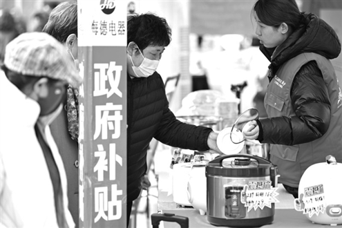 2025年3月28日,天津市北辰区举办消费品以旧换新惠民服务活动,居民在现场选购家电。新华社发