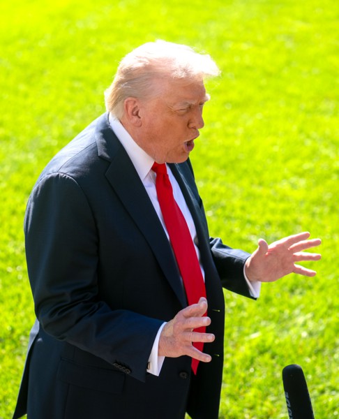 2025年10月5日,在美国首都华盛顿,美国总统特朗普回答记者提问。