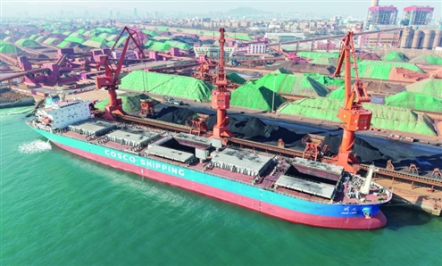 1月5日,青岛港完成2026年首船4.4万吨保供电煤接卸转运任务,实现电煤接卸作业“开门红”。作为北方电煤重要枢纽港之一,青岛港聚焦保供核心需求,科学调配、优化流程,实现电煤快卸快转,持续为区域电力安全和供暖稳定提供保障。图为在青岛港前湾港区86泊位,“鹏龙”轮在进行卸煤作业。