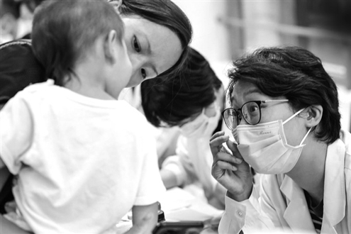 一位儿科医生在北京协和医院东单院区参加义诊活动。新华社发