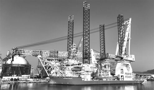 1月15日,由中集来福士为比利时建造的风电安装船“北欧之源”号在烟台交付。该船采用全直流供电模式,配备新型电池混合动力驱动系统,可有效减少建造成本、使用能耗与碳排放量。图为“北欧之源”号风电安装船。