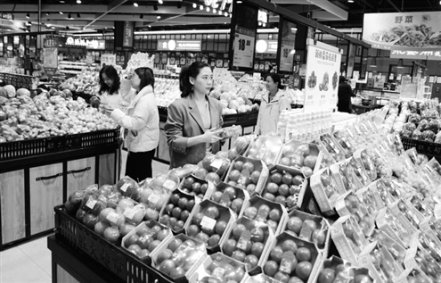我国“菜篮子”产品供给充裕。图为消费者在东营市一家超市购物。新华社发
