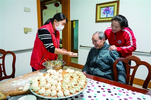 2025年10月23日,养老服务员上门为淄博市张店区一社区老人提供助餐服务。新华社发