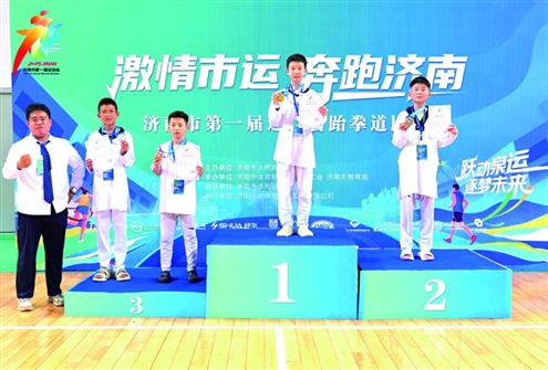 山东砺剑二队自2017年成立以来,队伍始终落实“训学一体、育体并行”方针,成绩斐然,目前在训队员150人左右,累计斩获355枚金牌、200枚左右银牌,更在韩国、马来西亚公开赛等国际赛事中为国争光。在2025年济南市第一届运动会中,作为槐荫区代表队核心参赛力量,队伍征战跆拳道赛事斩获7金8银6铜的优异成绩,奖牌数与金牌数均位居全市前列。依托槐荫区“校园选材—专业集训—赛事输送”的体教融合链条,这支队伍不仅为区域培育了优质竞技体育人才,更为青少年竞技体育发展提供了可复制的培育范式,充分彰显了社会力量参与体教融合的扎实成效。