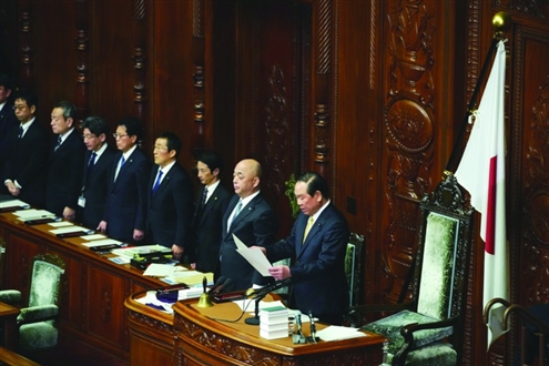 2026年1月23日,在日本东京,日本众议院议长额贺福志郎在众议院全体会议上宣读解散诏书,日本众议院正式解散。