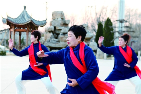 在惠民县淄角镇文化书院广场,社区居民在练习太极拳。本版图片均由新华社发