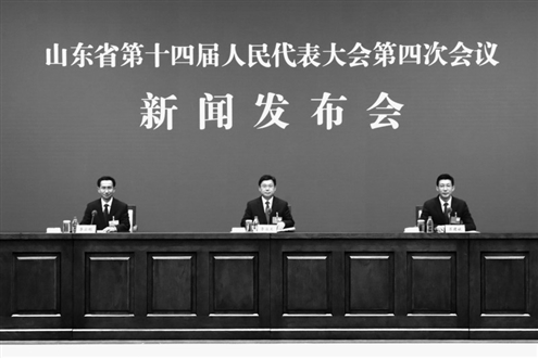 1月26日下午,山东省十四届人大四次会议举行新闻发布会,介绍会议议程及有关安排。记者 张效嘉 摄