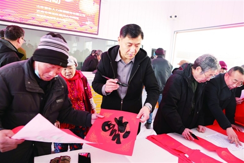点击查看原图 商报济南消息 新春将至,年味渐浓。近日,济南市莱芜区凤城零工市场内翰墨飘香、暖意融融,由山东泰东人力资源服务有限公司携手济南市莱芜区莲花山书画院联合举办的“笔墨传温情,服务零距离”新春送福公益活动热闹启幕。活动现场,12位书法老师们挥毫泼墨,为百余位来自乡下的零工农民朋友量身书写春联与“福”字,将浓浓的年味与真挚祝福送到劳动者心坎上。