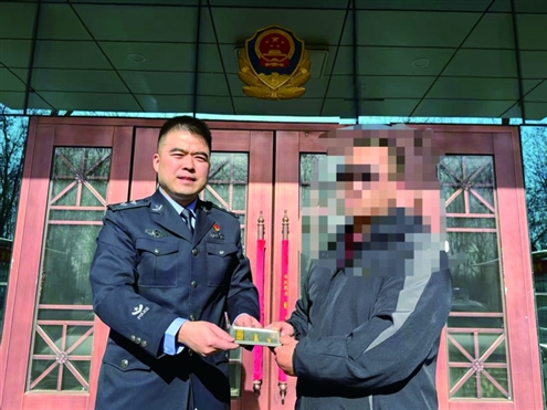被害人在取回黄金时,与吴忠市公安局利通区分局反诈民警的合影 新华社发