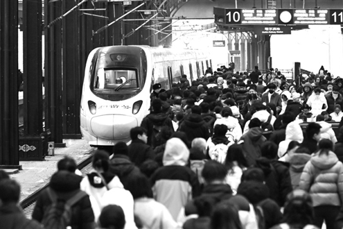 2月22日,旅客在哈尔滨火车站乘车出行。新华社发