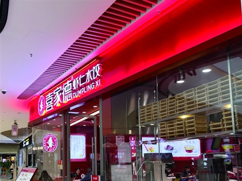 在济南市北部某购物中心的一家喜家德门店内,记者注意到,午餐高峰期时门店内几乎座无虚席,翻台率维持在较高水平。