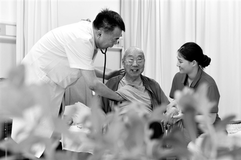 我国医保基金盘子更大、更稳了。图为在郓城颐合养老服务中心,医生为参保职工长护险的老人检查身体。新华社发