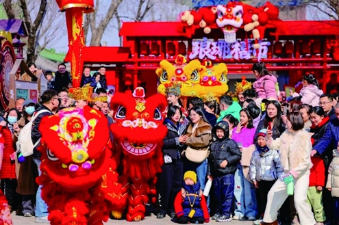 景区实景演出《国士·捍山河》于农历大年初一正式上演,首场便吸引来自全国4300名观众到场观看。另一方面,景区突破传统剧场空间限制,在开阔室外场景创新打造沉浸式互动演出。景区通过真人扮演特色NPC,与游客近距离互动、趣味沉浸,让游客从旁观者变为参与者,同时融入非遗技艺、民俗文化与非遗文创产品,不断丰富文旅体验的文化内涵。景区《琅琊五福新春大巡游》《上元燃灯巡游》等互动演出,将传统舞龙舞狮、社火、鱼灯、高跷等非遗元素融入其中。巡游与互动演艺拓展了演艺空间,强化了沉浸式、场景化体验,让非遗活态传承,也让民俗年味浓起来,成为景区吸引游客、提升口碑的亮点。