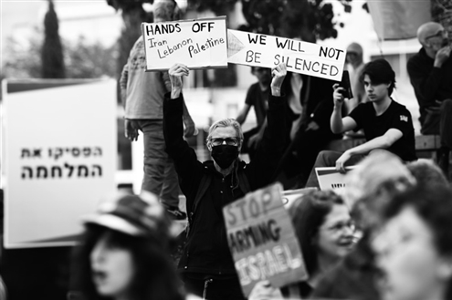 3月14日,人们在以色列特拉维夫参加集会。当日,人们在特拉维夫一处广场举行集会,抗议美国和以色列军事打击伊朗,要求美以停止一切战争行为。新华社发