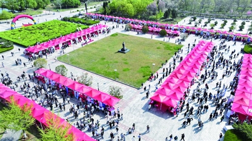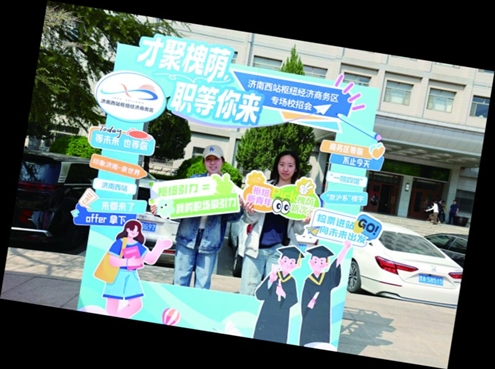 2日下午,济南西站枢纽经济商务区“才聚槐荫·职等你来”系列校园招聘会走进山东财经大学。