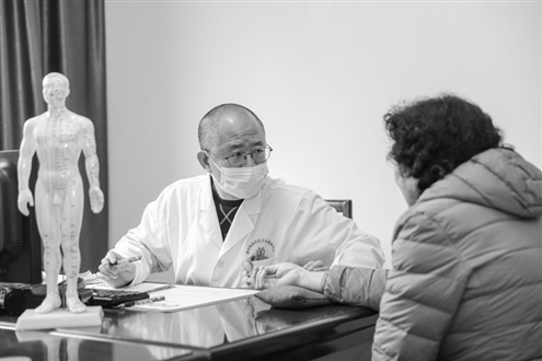 在青岛市李沧区李村街道社区卫生服务中心国医馆,医生为患者看病。新华社发