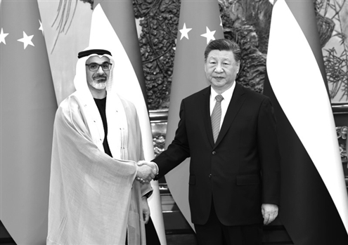 习近平指出,阿联酋是中国的全面战略伙伴,中方始终高度重视发展同阿联酋的关系。在双方共同努力下,中阿关系保持健康稳定发展,政治互信不断加深,务实合作稳步推进,人文交流丰富多彩。巩固和提升中阿关系是双方的坚定共识,符合两国人民期待。中方愿同阿方携手同行,打造更加稳固坚韧、富有活力的中阿全面战略伙伴关系。双方要继续在涉及彼此核心利益和重大关切问题上相互支持,保持高层交往,筑牢战略互信。加强发展战略对接,在能源、投资、贸易、科技等领域深挖潜力,深化互利合作。推动教育、民航、旅游等合作取得更大进展,密切人文交流,夯实民意基础。在联合国、金砖国家等多边平台增进协调合作,以中阿关系的稳定性应对国际和地区形势的不确定性,共同推动构建人类命运共同体。