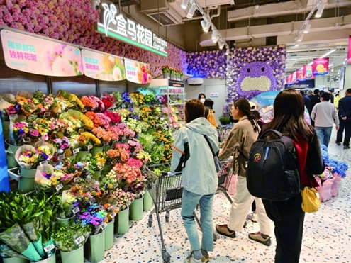 据了解,开业当日,从清晨开门起,到店消费的市民便络绎不绝。鲜活水产区前,帝王蟹、波士顿龙虾成为焦点,许多顾客现场挑选后,便交由餐饮区进行“现捞现做”,品尝美食;烘焙区同样火爆,瑞士卷、榴莲千层、各类今年新品抹茶烘焙,吸引着年轻顾客;盒马花园的重瓣芍药、油画牡丹深受女性顾客欢迎。