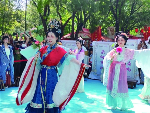 闻韶台上京剧、吕剧等传统剧目轮番上演,演员们精湛的演技、华丽的服饰、悠扬的唱腔,引来游客们的阵阵喝彩。