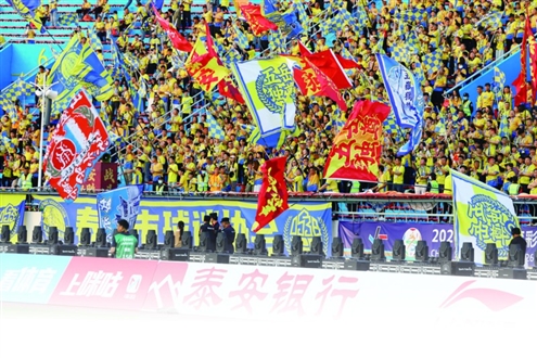 2026齐鲁超赛揭幕战现场呐喊助威的市民 新华社发