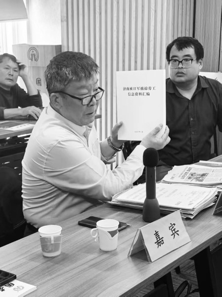 据悉,韩建平的父亲1942年投身革命后不幸被俘,被强行掳往日本充当苦役,在日本饱受磨难,直至1945年11月才艰难返乡。身为劳工后代,韩建平自1994年起,便为父辈及众多受害劳工奔走寻访、维权索赔。活动现场,他展示并解读了自己编纂的《济南被日军掳掠劳工信息资料汇编》。该书系统收录了济南被掳劳工名录、口述实录、历史文献与维权记录等珍贵史料。